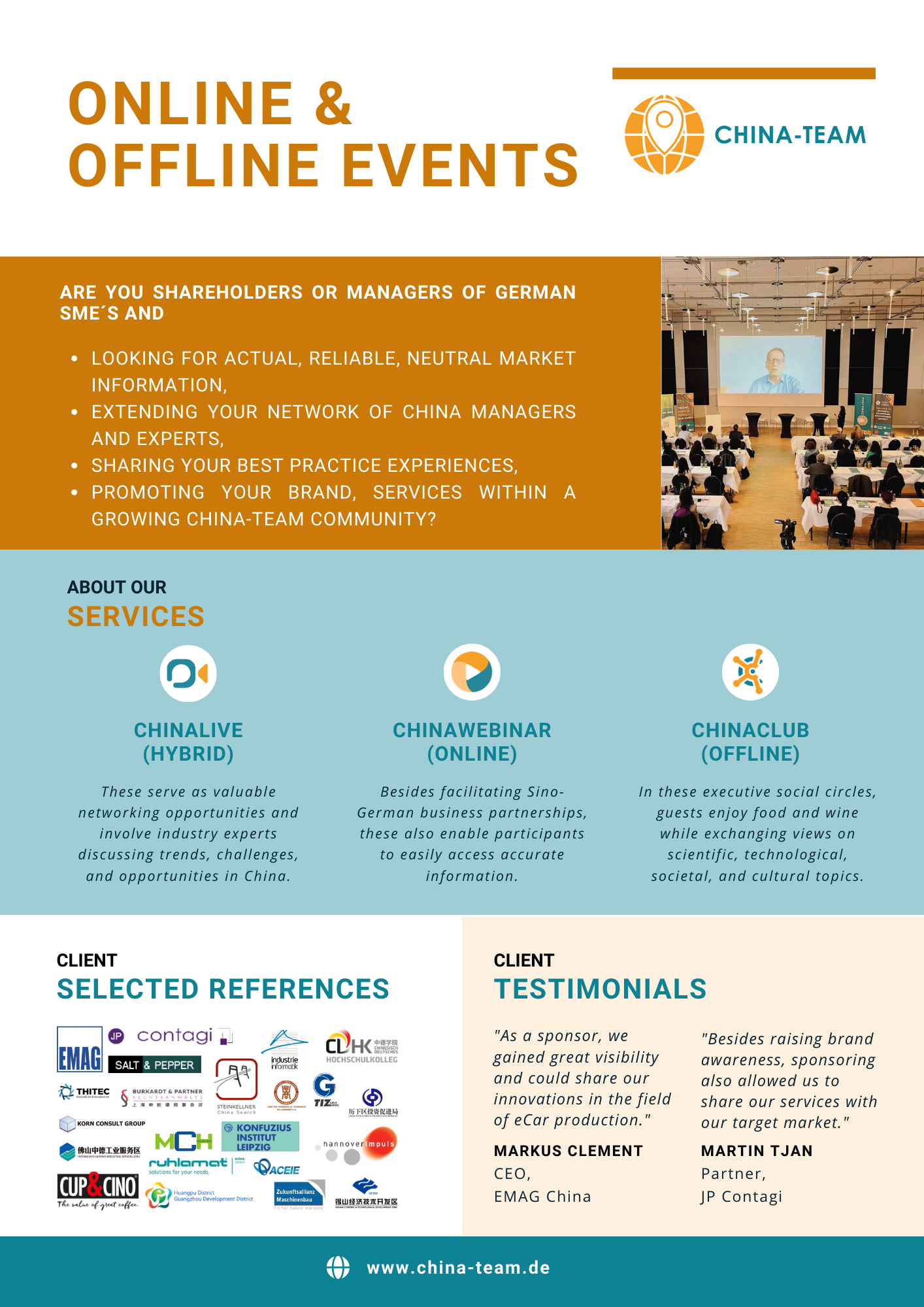 Erfahren Sie mehr über unsere aufregenden Online- und Offline-Events sowie unser Coaching- und Beratungsangebot vom China-Team. Wir haben alle Informationen in einem übersichtlichen Flyer für Sie zusammengestellt.